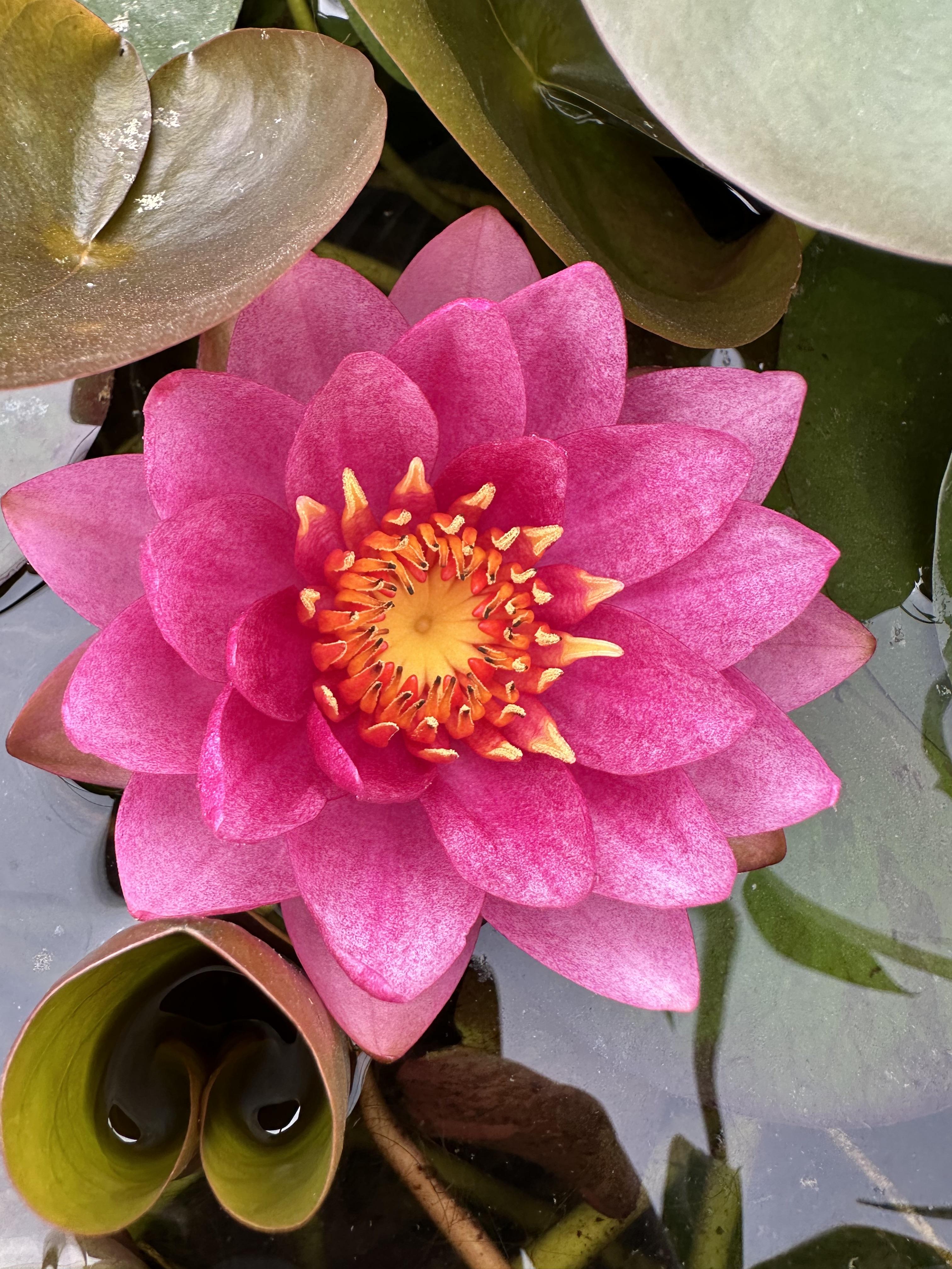 Le Nymphaea James Brydon est un nénuphar élégant, réputé pour ses fleurs rouge framboise au cœur lumineux qui contrastent avec son feuillage vert foncé. Sa floraison généreuse en été apporte une touche de couleur vive et raffinée aux bassins et étangs.